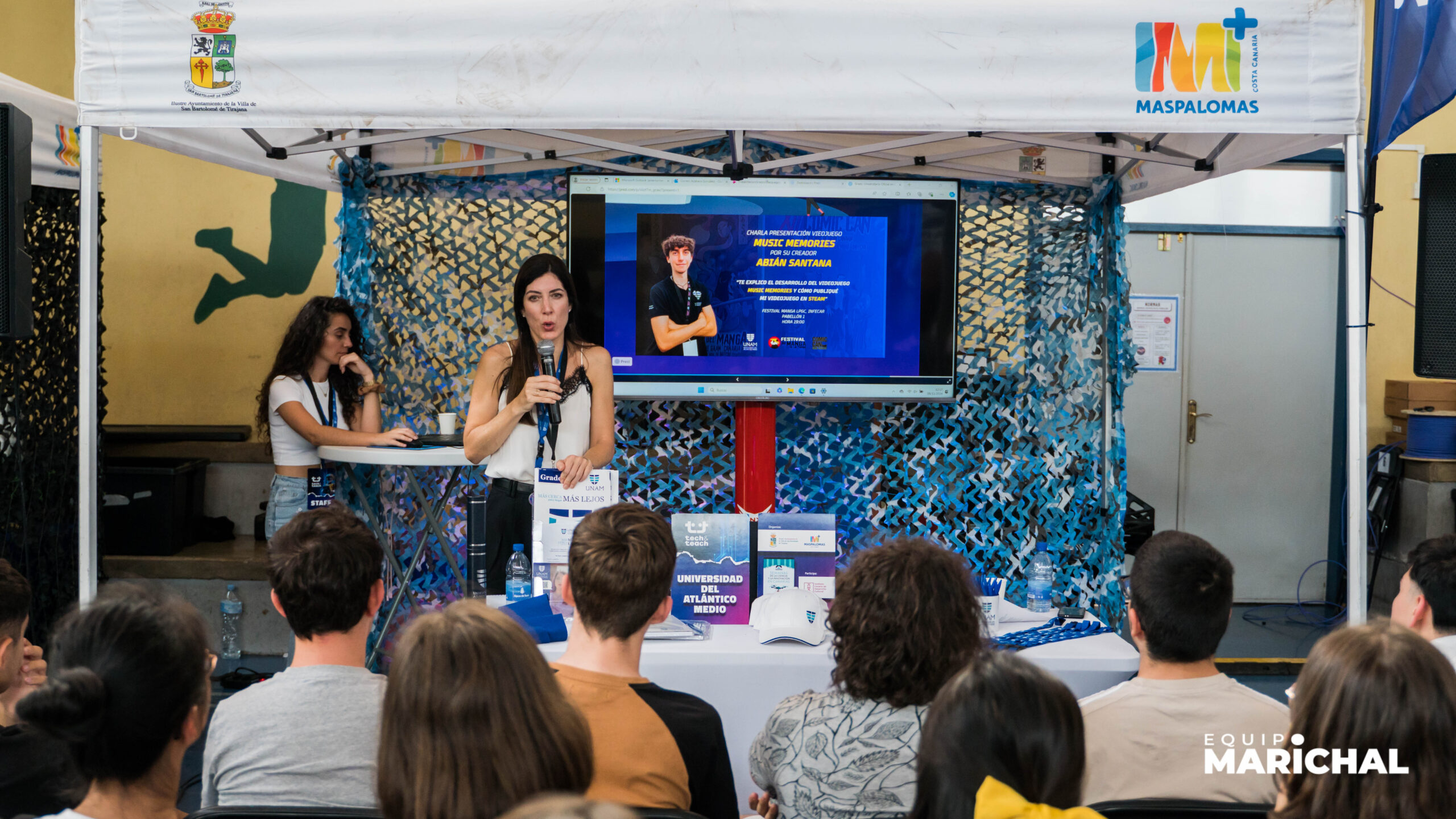 En la inauguración del pabellón particparon el director de la Agencia Canaria de Investigación, Innovación y Sociedad de la Información del Gobierno de Canarias (ACIISI), Javier Franco Hormiga; la concejala de Turismo, Festejos y Eventos, Yilenia Vega; y el director de Tech&Teach, David Mauricio. El director de ACIISI destacó que estas jornadas, son “una gran oportunidad de brindar a nuestros jóvenes las herramientas digitales que le permitan afrontar los retos del mundo tecnológico, y ofrecer perspectivas inspiradoras y la importancia de la tecnología como instrumento de transformación social”. Por su parte, la concejala de Yilenia Vega, “la formación en tecnología se han unido con la formación en prevención digital en estas jornadas que son más que necesarias para nuestros jóvenes y mayores, por eso desde la Concejalía de Turismo, Festejos y Eventos no descartamos que esta cita se convierta en un evento anual que añada formación en las nuevas tecnologías para nuestros mayores”.
