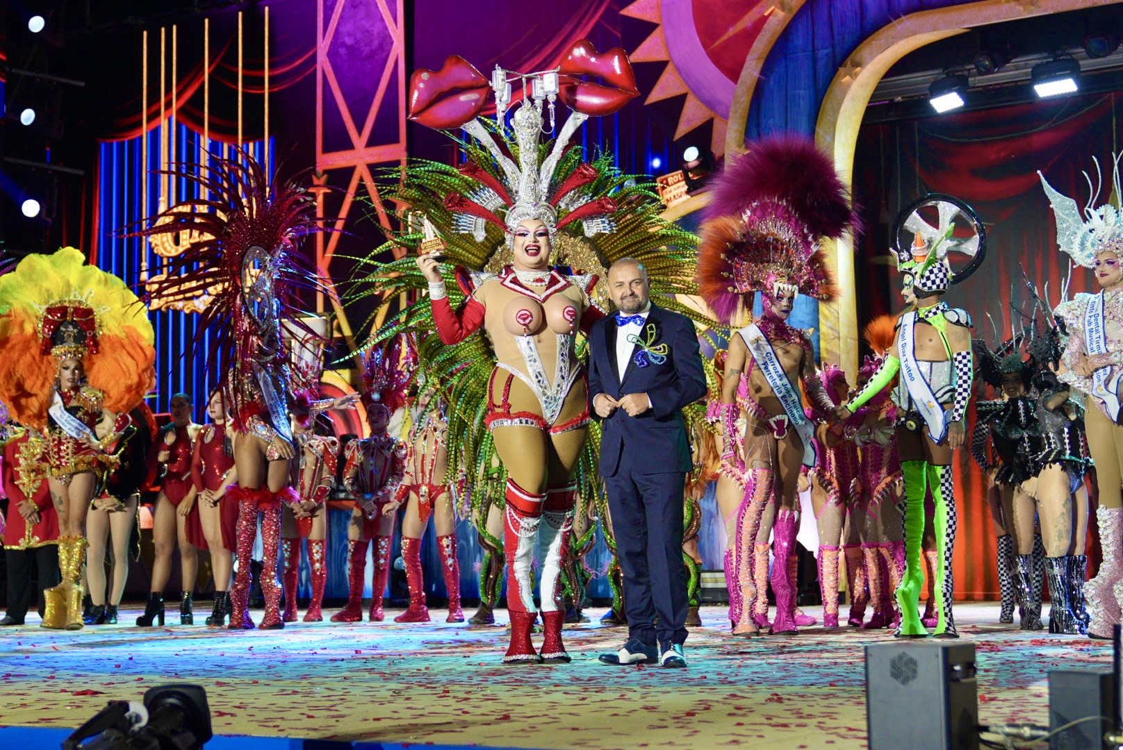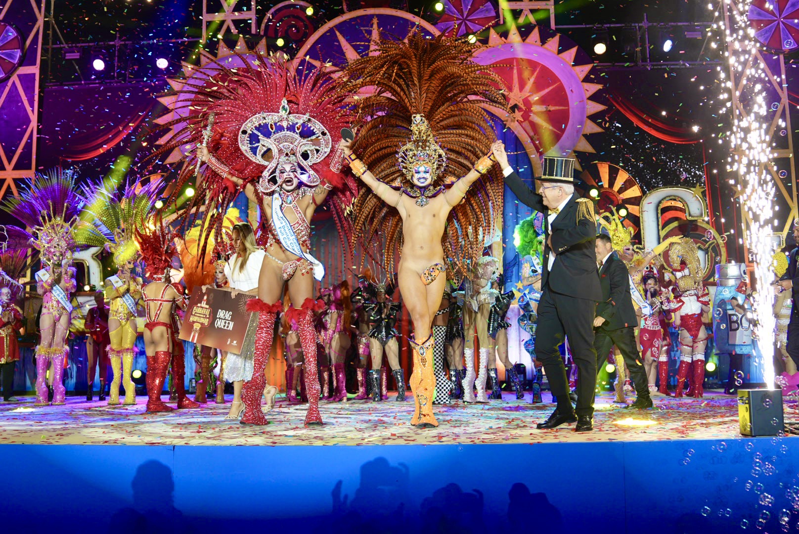 Por su parte, el tercer lugar fue para Drag Acrux con “Quien no arriesga no gana… ¿y tú apuestas por mí?”, diseño de Nefalí Betancor para Connecting Bingo, mientras que el cuarto clasificado fue Drag Sequins con la obra de Josep López Martí titulada “Lo que el bisturí se llevó… Estoy más estirá que un chicle”, patrocinada por el Excmo. Ayto. de Arucas, Vervia Asesores y Carrozas José Halcón. Además, la gala contó con dos grandes estrellas de la música, María Isabel y la icónica Mónica Naranjo, además de la actuación de despedida de Drag Elektra, ganador de la edición 2025.